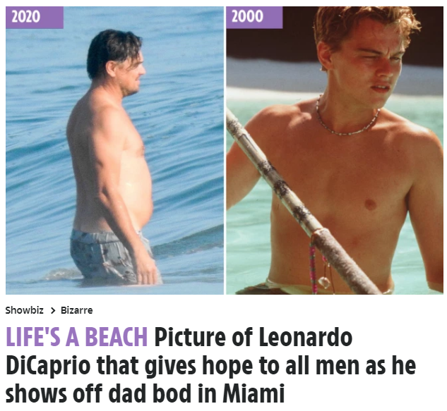 De vez em quando, as revistas de tendências nos lembram daquela diferença pouco sutil com termos irritantes como o dad bod, ou seja, corpo de pai, cunhado por MacKenzie Pearson, uma estudante da Universidade de Clemson, que definia um homem que faltasse a uma aula de crossfit para ir beber e cuja a contrapartida feminina eram as “gorduchinhas”, porque no caso das mulheres não importava que estivessem saudáveis, apenas gostosas. O detalhe que não podemos ignorar é que enquanto um exemplo de dad bod era um Leonardo Di Caprio de maiô deitado em uma espreguiçadeira ou um Ben Affleck em um agasalho comprando no supermercado, os delas eram Christina Hendricks ou Monica Bellucci, maquiadas e vestidos como se fossem presidir um baile de gala. E, claro, sem um grama de pneuzinhos no corpo.