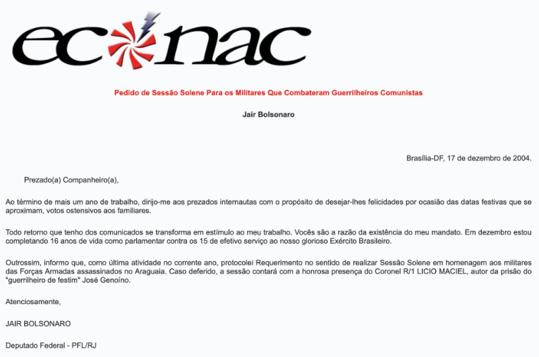 Enfim, há várias ligações entre Bolso e neonazistas. Sempre houve. Sempre avisamos. E, ainda assim, quase 58 milhões de brasileiros elegeram um nazista. Semana passada, a antropóloga Adriana Dias, uma das maiores pesquisadoras sobre a extrema-direita no país, revelou uma carta enviada por Bolso a três dos maiores sites neonazistas no Brasil. A data? 2004! Ou seja, bem antes do que a gente imaginava!
