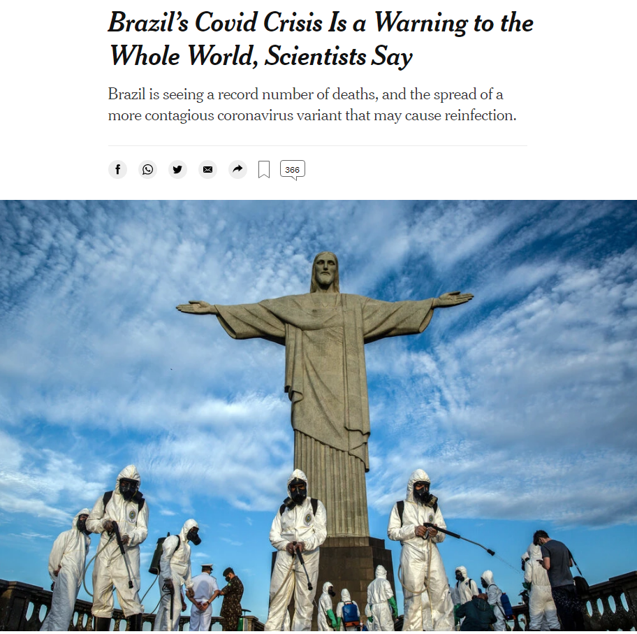 Esta também parece ser a opinião de um jornal respeitado internacionalmente. Um ano depois, estamos pior que nunca, afirma o New York Times . Nenhum outro país afetado tão severamente pela covid ainda está apresentando os recordes de contaminações e mortes que o Brasil vem ostentando.