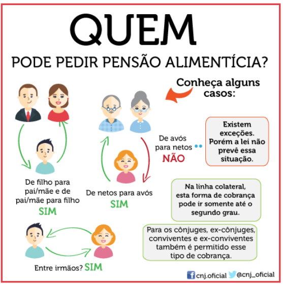 Ele explica que a pensão alimentícia, embora tenha este nome, é um direito previsto na legislação civil, para suprir minimamente as necessidades básicas, preservar o sustento e o bem-estar dos filhos. O valor deve garantir os custos com educação, moradia, vestuário, saúde, dentre outros que porventura venham a ser necessários. Podem receber pensão os filhos menores de 18 anos; os filhos maiores até a idade de 24 anos, desde que estejam estudando (curso técnico, faculdade ou pré-vestibular), o ex-cônjuge ou ex-companheiro, grávidas ou parentes com necessidade comprovada.