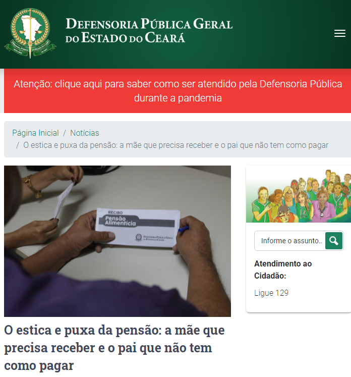 “Todos os meses eu depositava na conta da minha ex-companheira o valor acordado na audiência, mas agora não tenho como pagar mesmo. Estou passando por um período bem apertado, de falta de dinheiro até pra comer, minhas contas estão todas atrasadas e infelizmente não tenho como arcar. Pelo menos, por enquanto, até essa pandemia passar e as coisas voltarem ao normal. Eu fico com dó no coração em não poder mais ajudar, porque meus filhos são tudo pra mim, e sei do esforço da mãe das crianças, mas eu também tô pedindo socorro. Por isso fui na Defensoria”, conta o homem, que agora está desempregado.