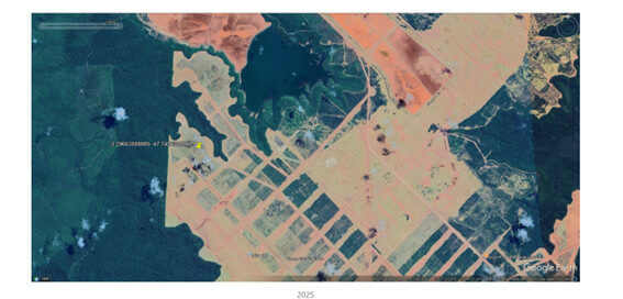 “As atividades de supressão de vegetação foram prévia e devidamente licenciadas, autorizadas e auditadas e ocorreram em total atendimento aos limites e condições previstas nas autorizações”, afirma a mineradora. Veja imagens do local em 2024 e em 2025.