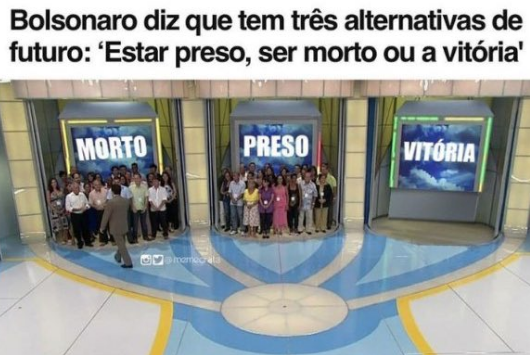 O que temos de certo até agora são as bravatas do Capetão. No sábado, ele afirmou para líderes evangélicos em Goiânia que vê três opções no seu futuro : ser preso, morrer ou a vitória. Confesso que fiquei em dúvida quanto a minha preferência para o destino do Coisa Ruim.