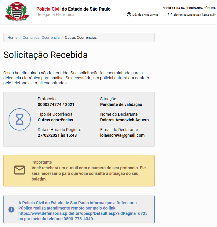 Portanto, peço a quem puder ajudar, a quem ainda tem emprego, me fazer essa contribuição. Você pode ajudar com qualquer quantia no Paypal , ou depositar numa das minhas duas contas (uma no Banco do Brasil, agência 3653-6, conta 32853-7, outra no Santander, agência 3508, conta 010772760), no meu nome oficial, que é Dolores Aronovich Aguero, CPF 102.945-058-73 (nem tem por que esconder o número; os misóginos já o divulgam, junto ao meu endereço residencial, há anos). Ah, a pedidos, abri uma PIX! A chave é meu email, lolaescreva@gmail.com. E eu tenho Apoia-se !