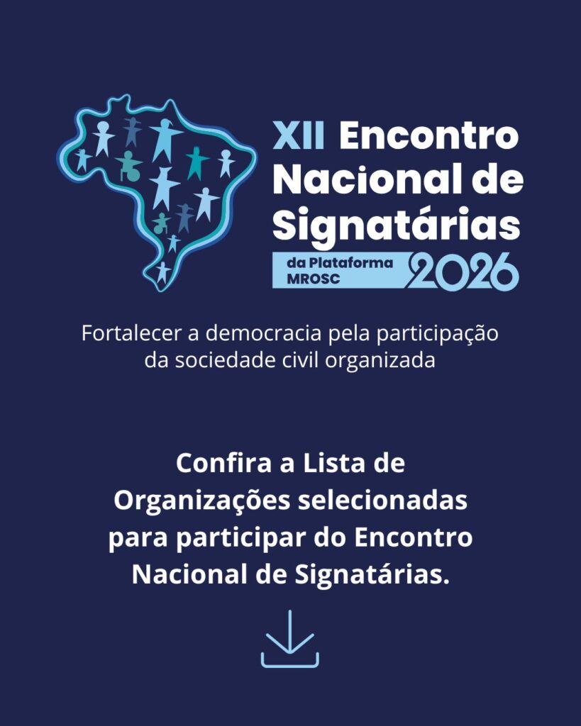 A Plataforma MROSC publica a relação das Organizações da Sociedade Civil (OSCs) selecionadas para o Encontro Nacional de Mulheres e o XII Encontro de Signatárias. Os eventos ocorrerão entre os dias 24 e 26 de março de 2026, em Brasília no Distrito Federal.