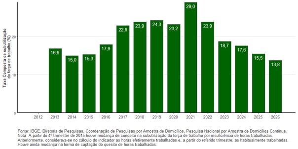 | Taxa de subutilização | 13,8% | 13,9% | 15,5% |