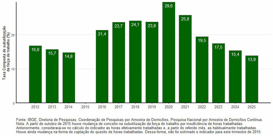 | Taxa de subutilização | 13,9% | 14,1% | 15,4% |
