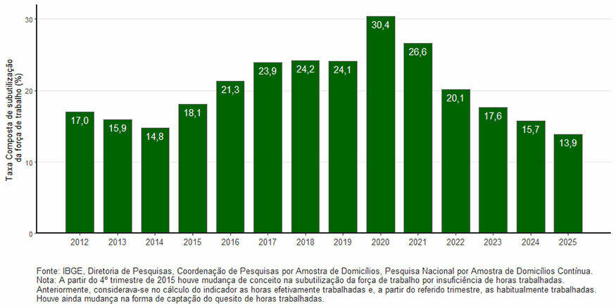 | Taxa de subutilização | 13,9% | 14,4% | 15,7% |